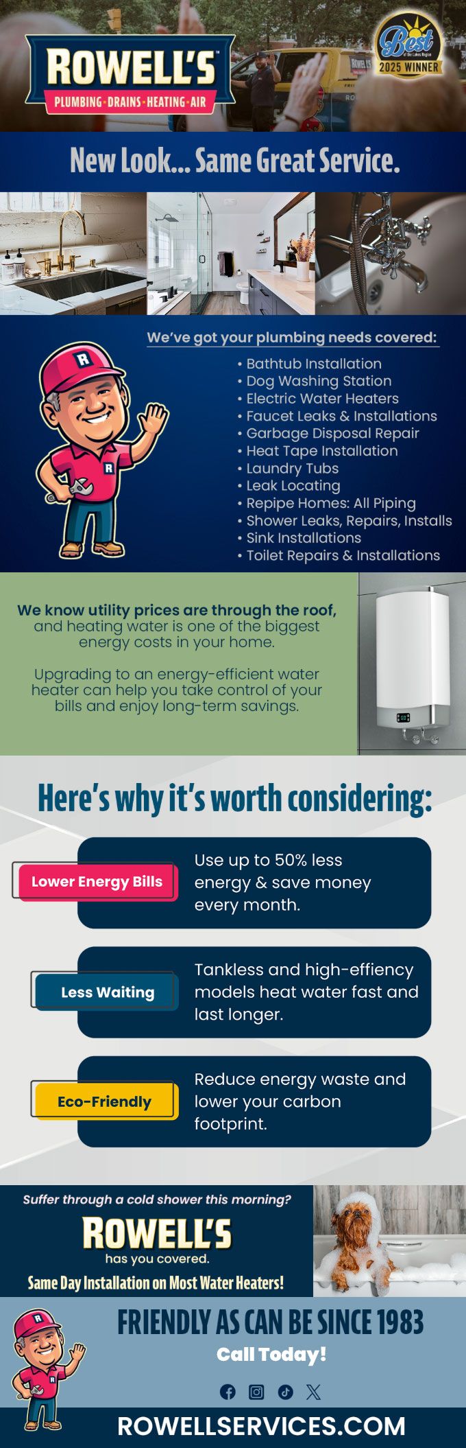"Friendly As Can Be Since 1983!" When you need help with your plumbing, drains, heating, cooling or electrical in Gilford, you can always rely on Rowell's Services! Call us now or book online!