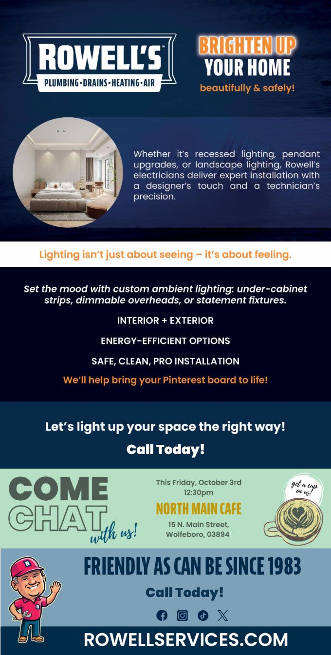 "Friendly As Can Be Since 1983!" When you need help with your plumbing, drains, heating, cooling or electrical in Gilford, you can always rely on Rowell's Services! Call us now or book online!