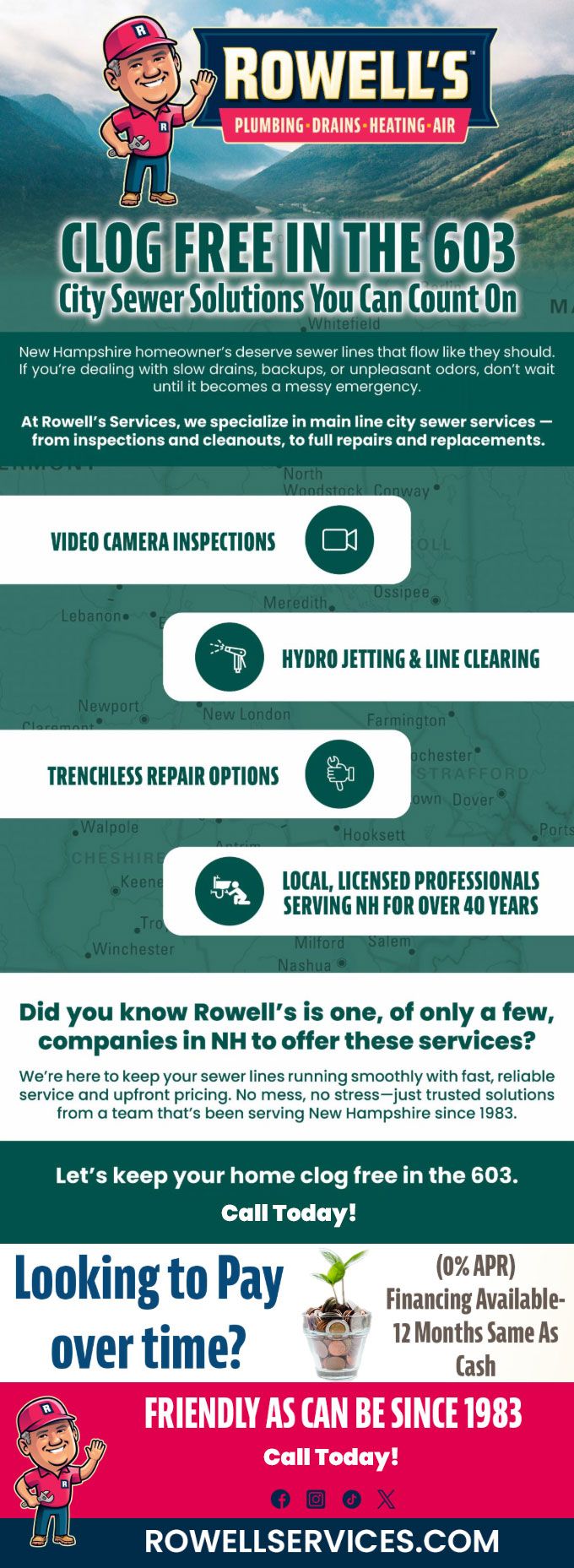 We're here to keep your sewer lines running smoothly with fast, reliable service and upfront pricing. No mess, no stress—just trusted solutions from a team that's been serving Gilford since 1983.