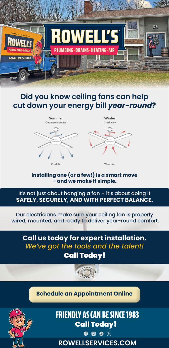 "Friendly As Can Be Since 1983!" When you need help with your plumbing, drains, heating, cooling or electrical in Gilford, you can always rely on Rowell's Services! Call us now or book online!