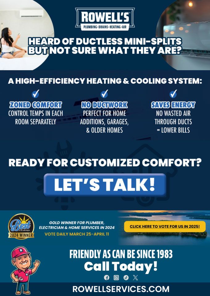 "Friendly As Can Be Since 1983!" When you need help with your plumbing, drains, heating, cooling or electrical in Gilford, you can always rely on Rowell's Services! Call us now or book online!